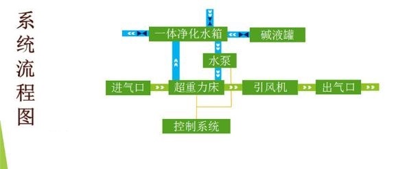 工作原理圖中:綠色箭頭代表廢氣走向,藍(lán)色箭頭代表水路線,細(xì)線代表控制線