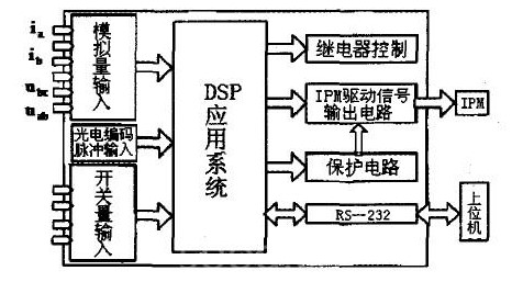 設(shè)計(jì)中采用了IGBT智能電源模塊。它是一個(gè)大規(guī)模集成模塊,不僅集成了功率開關(guān)器件和驅(qū)動(dòng)電路,還包括過壓、過流、過熱等故障檢測(cè)電路,可以將故障保護(hù)信號(hào)發(fā)送給CPU或DSP進(jìn)行處理。